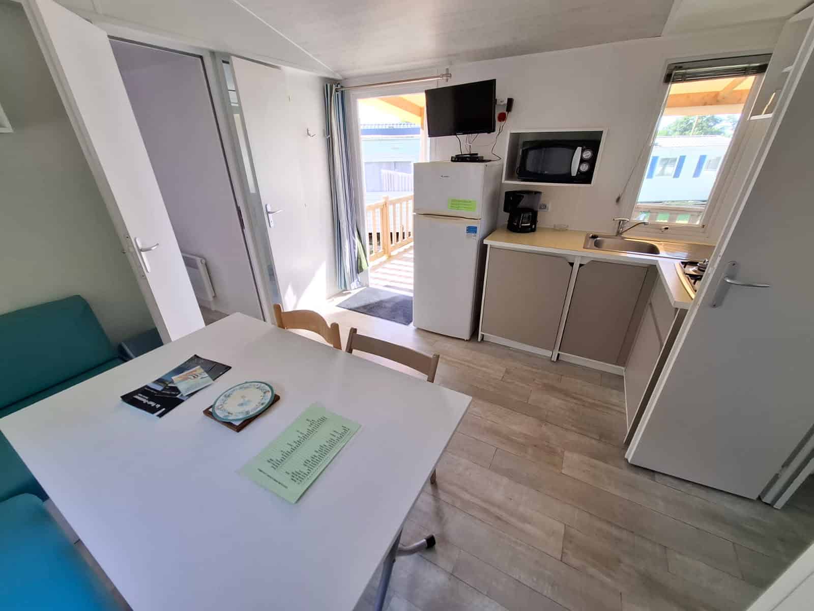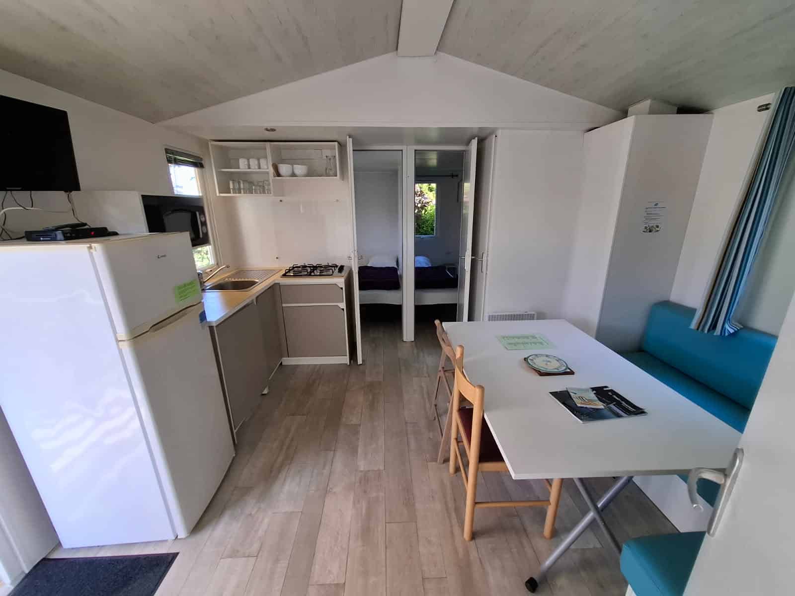 Ce logement confortable peut accueillir jusqu’à 6 personnes. Il dispose d’un coin cuisine équipé (évier, plaque de gaz 3 feux, réfrigérateur, cafetière, micro-ondes, vaisselle pour 6).